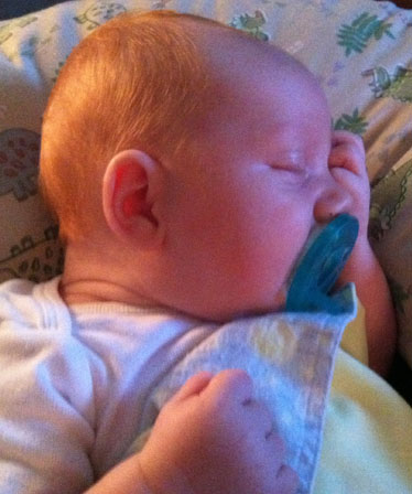 They moved him to an incubator within my sight and I was able to watch as they did their flurry of tests. You could see he had a bunch of red hair. It was so amazing to see him after knowing he had been inside me…I can’t even put it into words. They wrapped him up quickly and held him close to my face so I could see him better. I was prepared to think he looked ugly right after coming out but I thought he looked beautiful. Someone said, “Let mom get a kiss!” They leaned him in close so I could give him a kiss on the cheek and then he was whisked away. Greg left with them to go to the nursery while they sewed me back up. It was 11:25 p.m. I had a baby just under 24 hours after arriving at the hospital.